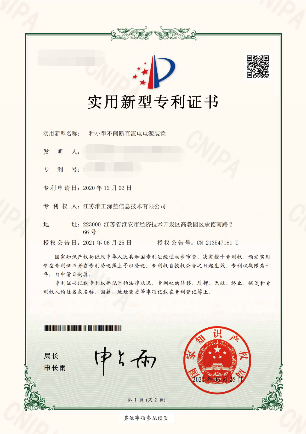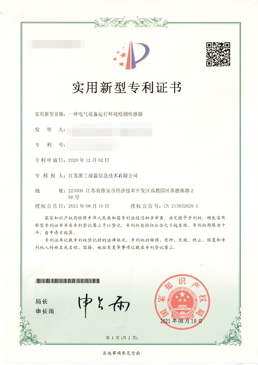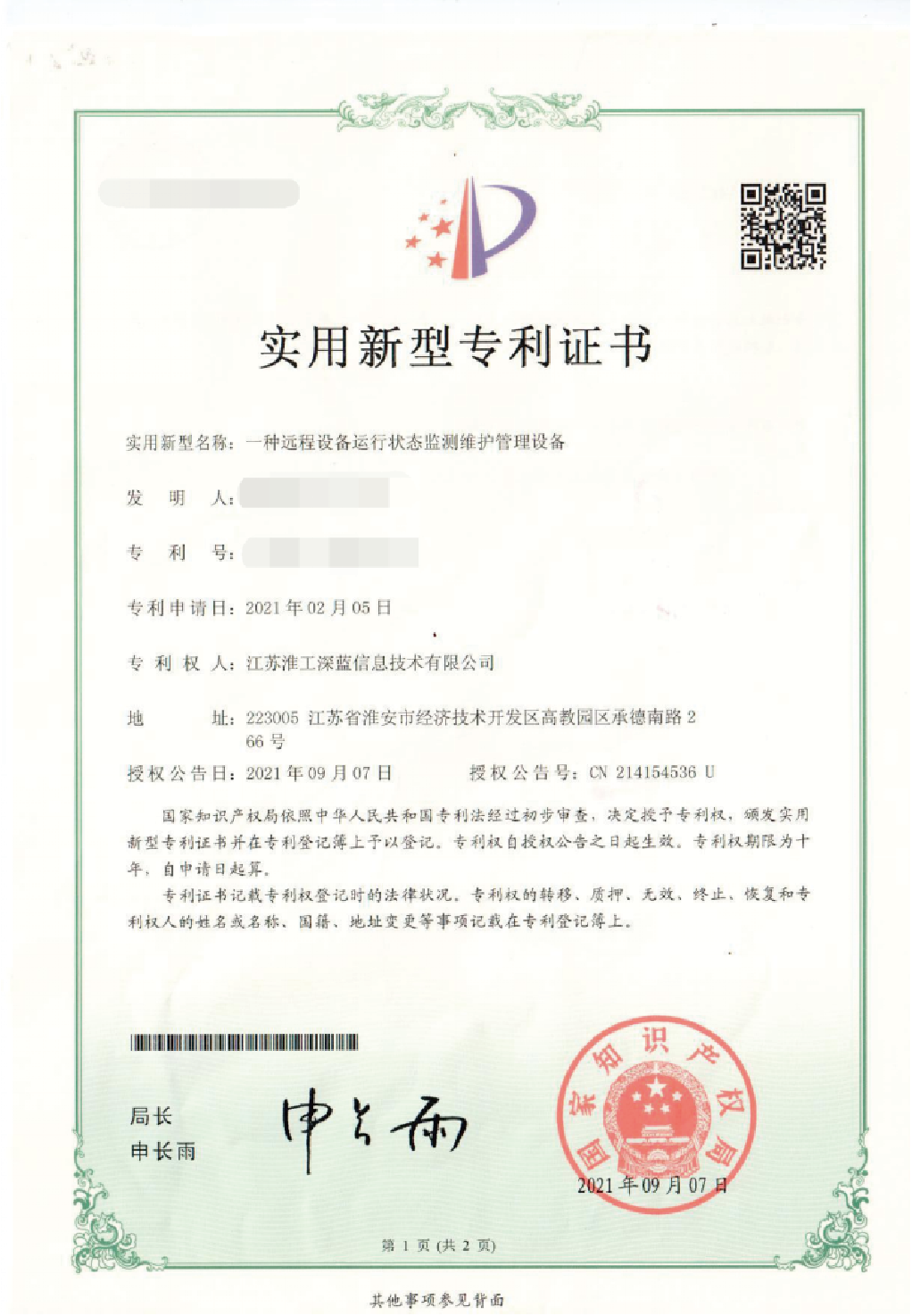 • 實(shí)用新型專(zhuān)利證書(shū)2
