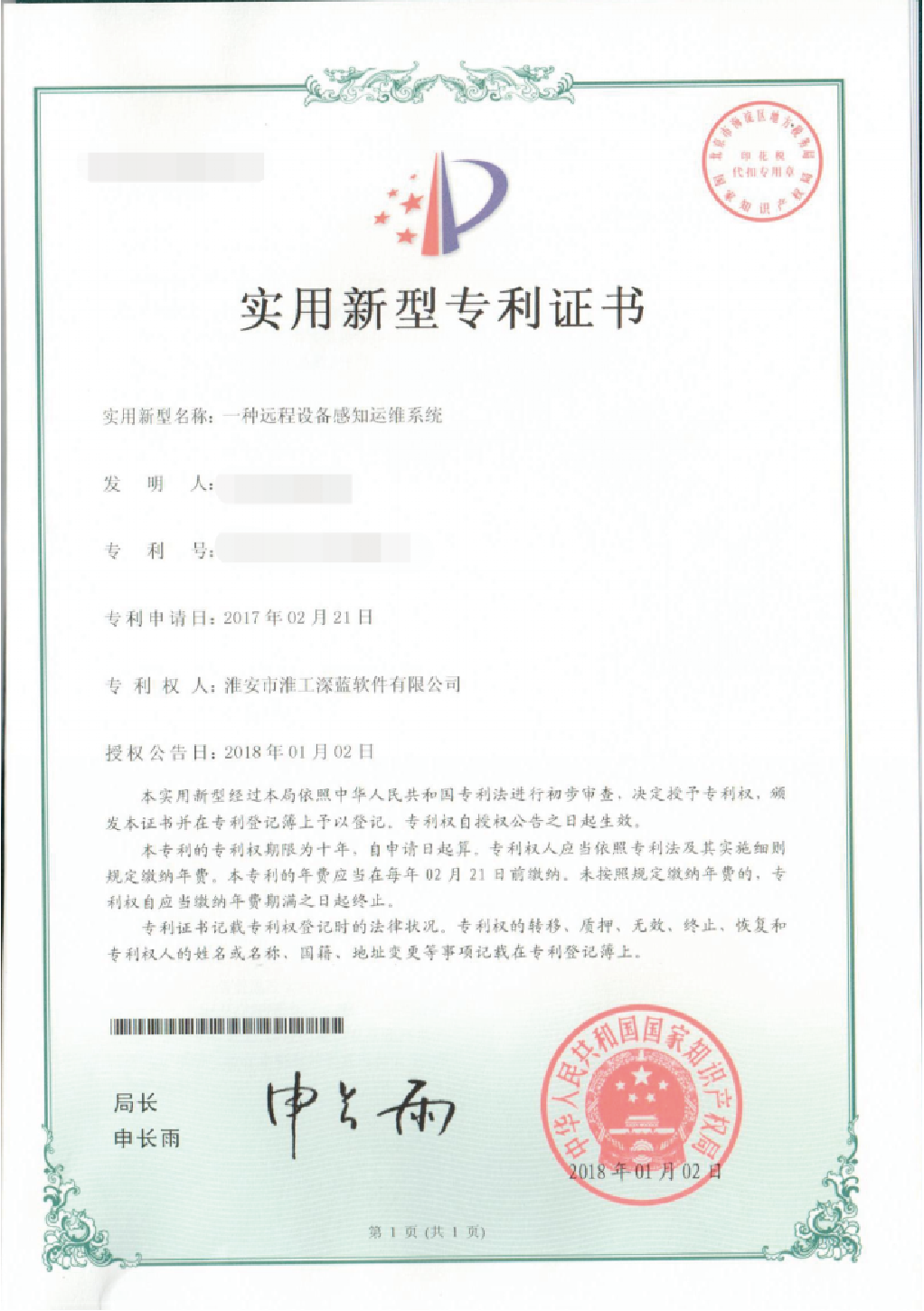 • 實(shí)用新型專(zhuān)利證書(shū)1