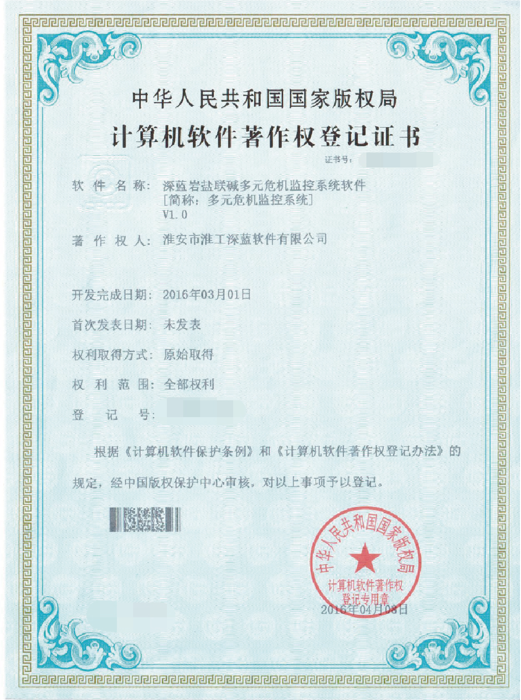 • 計(jì)算機(jī)軟件著作權(quán)登記證書(shū)2