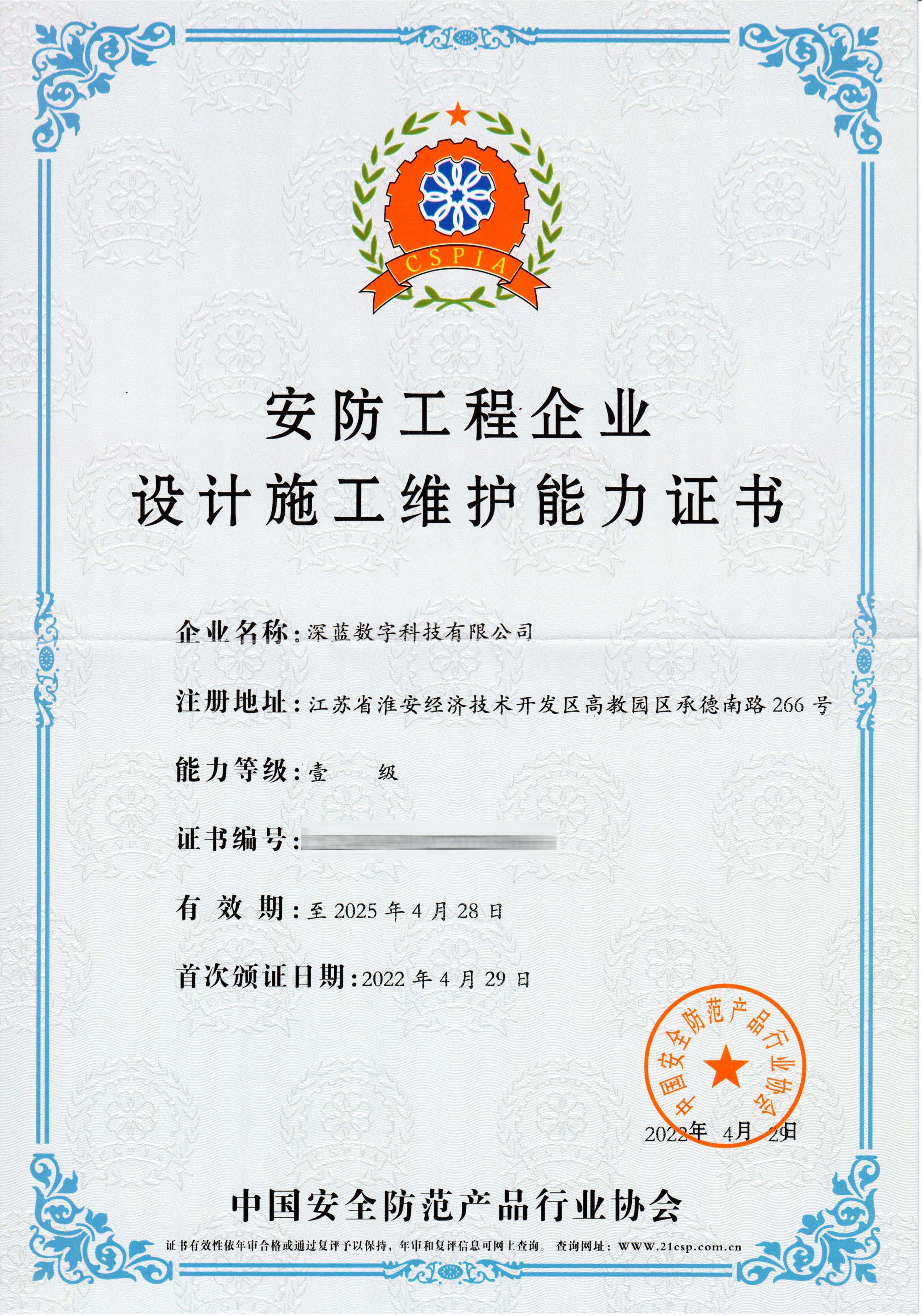 • 安防工程企業(yè)設(shè)計(jì)施工維護(hù)能力證書(shū)