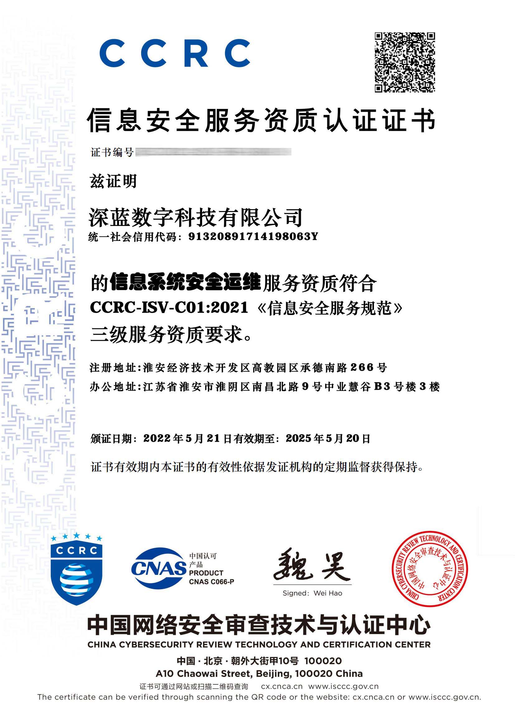 • CCRC信息系統(tǒng)安全運(yùn)維證書(shū)
