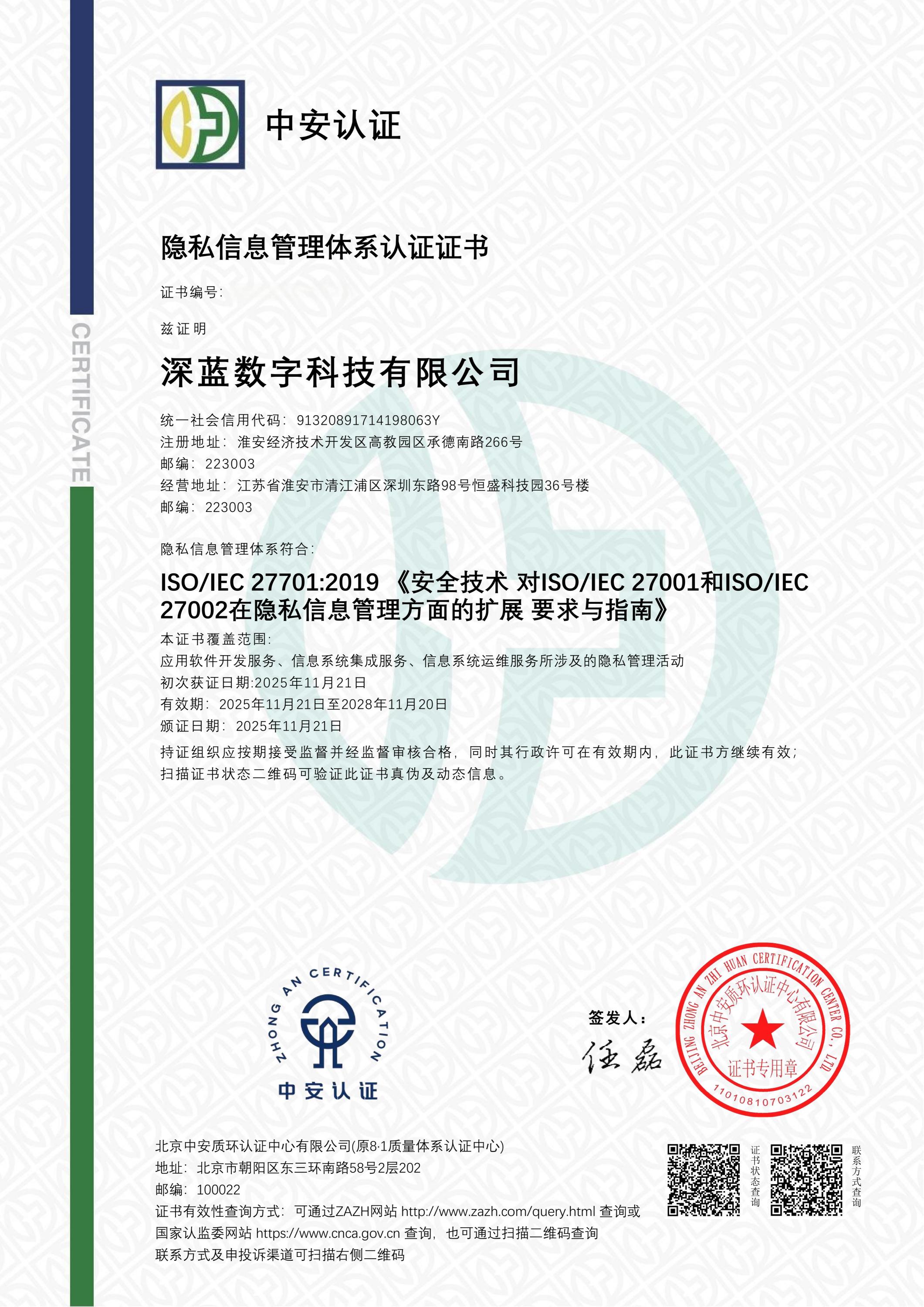 • 隱私信息管理體系認(rèn)證證書(shū)